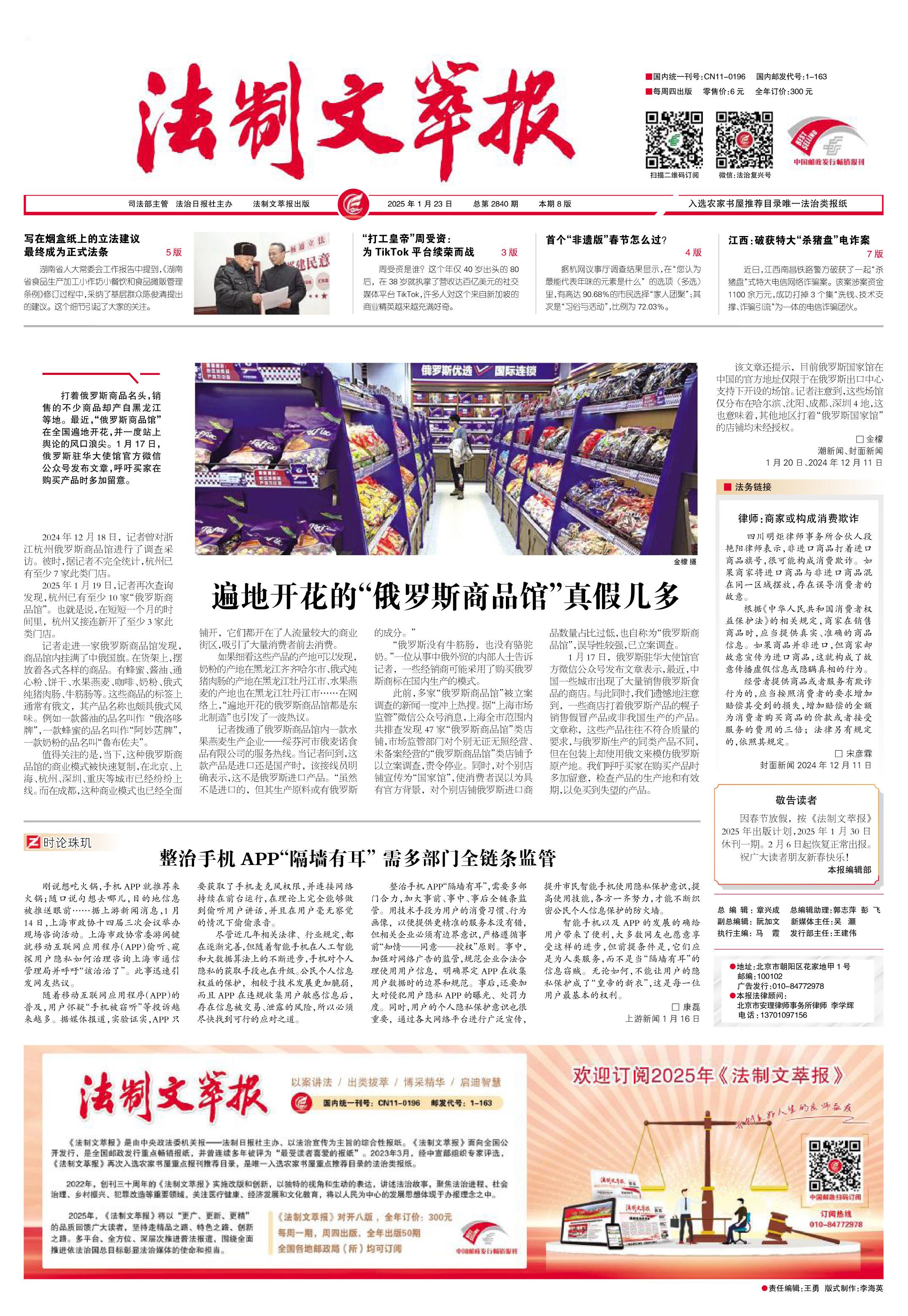 2025年1月23日《法制文萃報(bào)》總第2840期1版