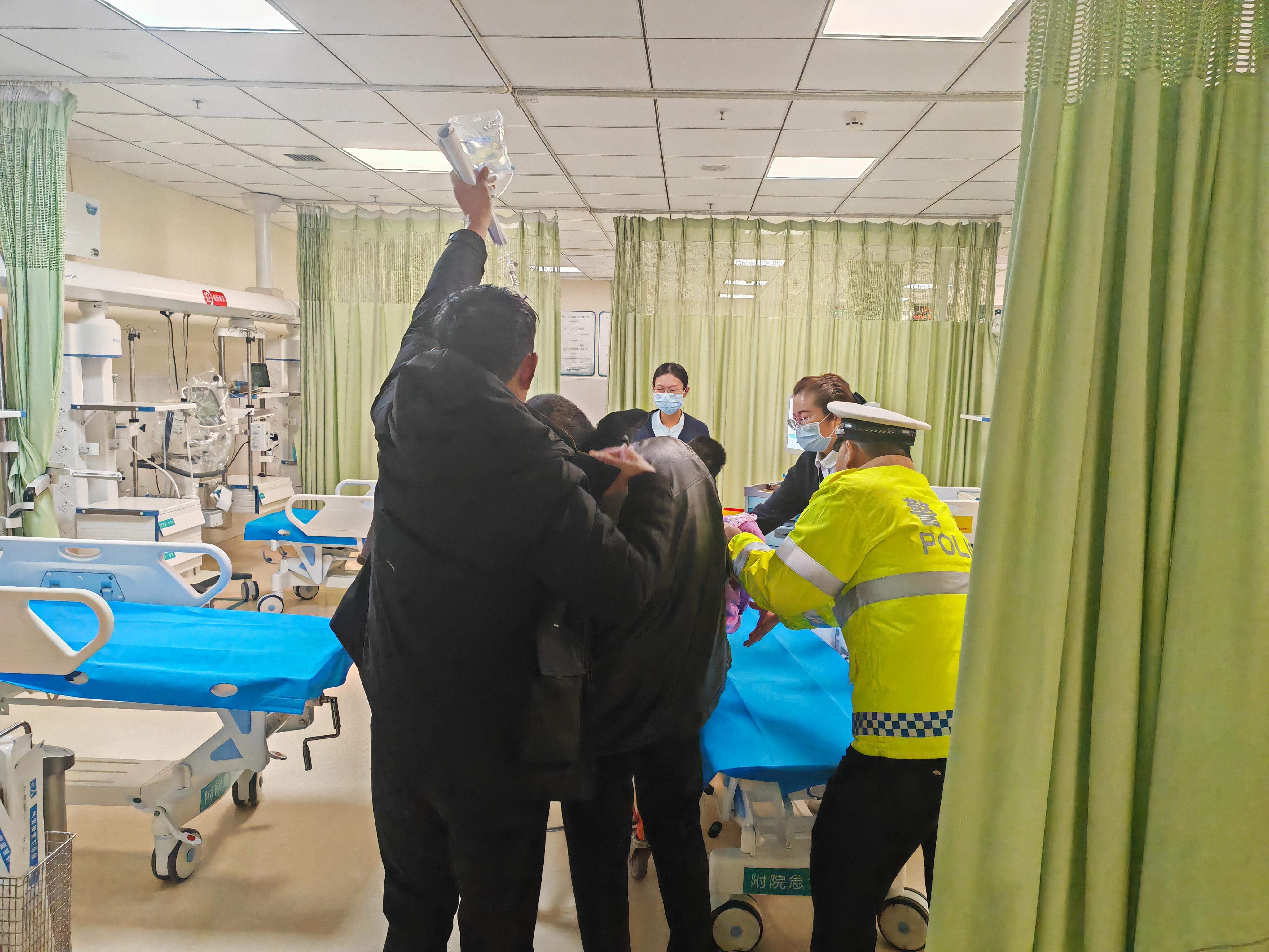 2025年2月4日,正值春節(jié)假期的返程日,車輛擁堵行駛緩慢。中午11時(shí)50分許,山東省濟(jì)寧市金鄉(xiāng)縣公安局交通警察大隊(duì)三中隊(duì)民輔警接到指揮中心指令:有群眾求助,家里有人突發(fā)腦出血,已處于昏迷狀態(tài),情況十分危急,急需到濟(jì)寧附屬醫(yī)院治療。