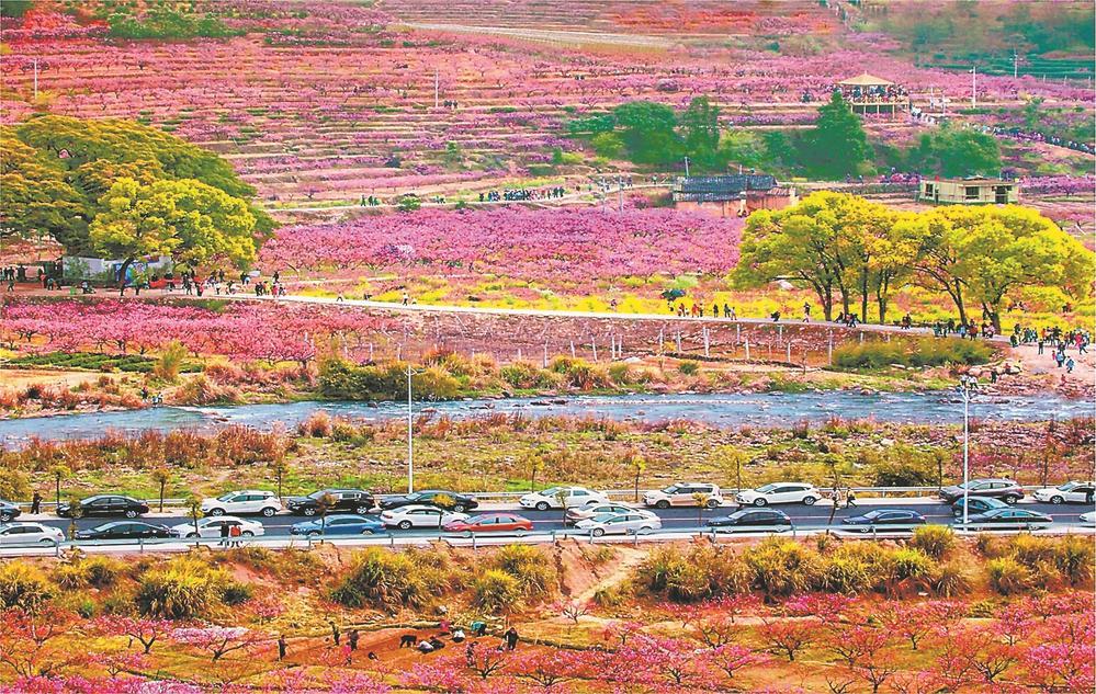 穆云鄉(xiāng)是福安水蜜桃的主產(chǎn)區(qū),桃樹栽培面積達(dá)1萬多畝。每年3月,十里桃花如醉霞緋云般爭芳斗艷,遠(yuǎn)觀桃林成海,樹下花香四溢。沿著秀溪逆流而上兩公里,有著“南國最美葡萄溝”美譽(yù)的刺葡萄產(chǎn)地溪塔村就在步道盡頭。放眼望去,一條秀溪,串起一處處桃花園……穆云鄉(xiāng)鄉(xiāng)長鐘成華介紹:“我們借力水蜜桃核心產(chǎn)業(yè)觀光園的建成,虎頭村、溪塔村實(shí)現(xiàn)了連片發(fā)展。鄉(xiāng)里通過舉辦畬鄉(xiāng)桃花節(jié)、三月三歌會(huì)、水蜜桃采摘節(jié)、刺葡萄采摘節(jié)等活動(dòng),每年吸引70多萬人次前來賞花觀景、采摘游玩,水蜜桃、刺葡萄的知名度和美譽(yù)度不斷提高,水果價(jià)格也跟著水漲船高,果農(nóng)是最大的受益者?!?/p>