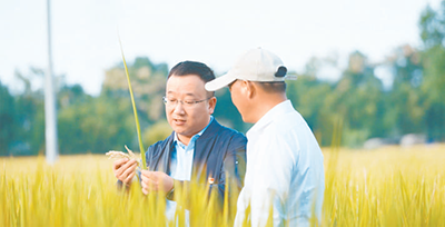 張家墊村黨總支書記張云(左)深入田間地頭向種糧大戶了解種植情況(資料圖片)