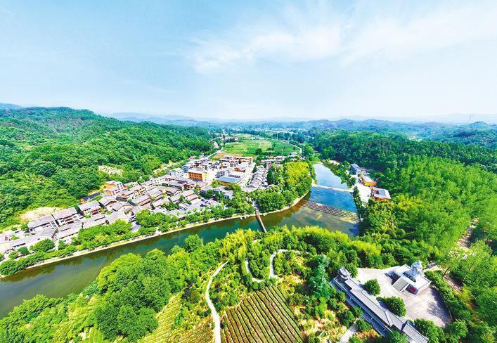 空中俯瞰堰河村全景(谷城縣委宣傳部供圖)