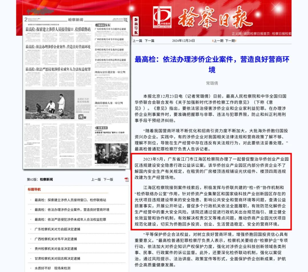 “督促整治‘僑夢苑’產(chǎn)業(yè)園區(qū)違規(guī)建設(shè)安全隱患行政公益訴訟案”被《檢察日報》報道