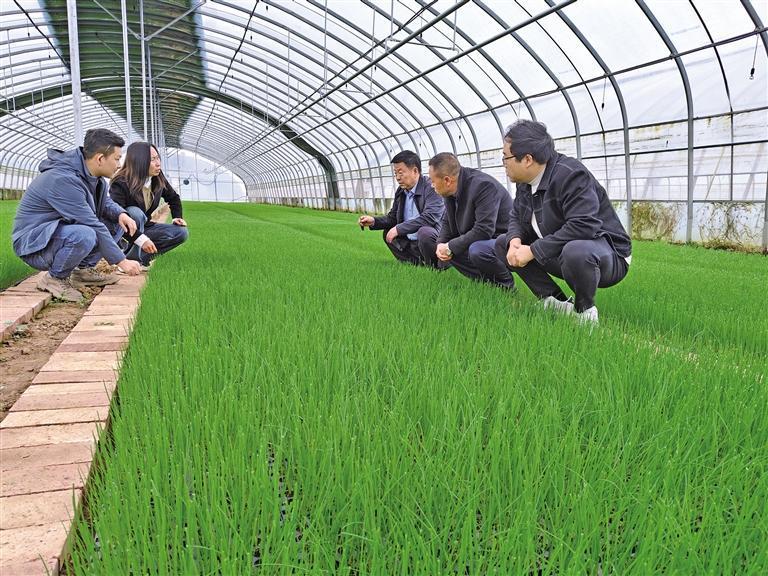 高嘴頭村駐村工作隊(duì)隊(duì)員查看蔥苗培育情況(資料照片)受訪單位供圖
