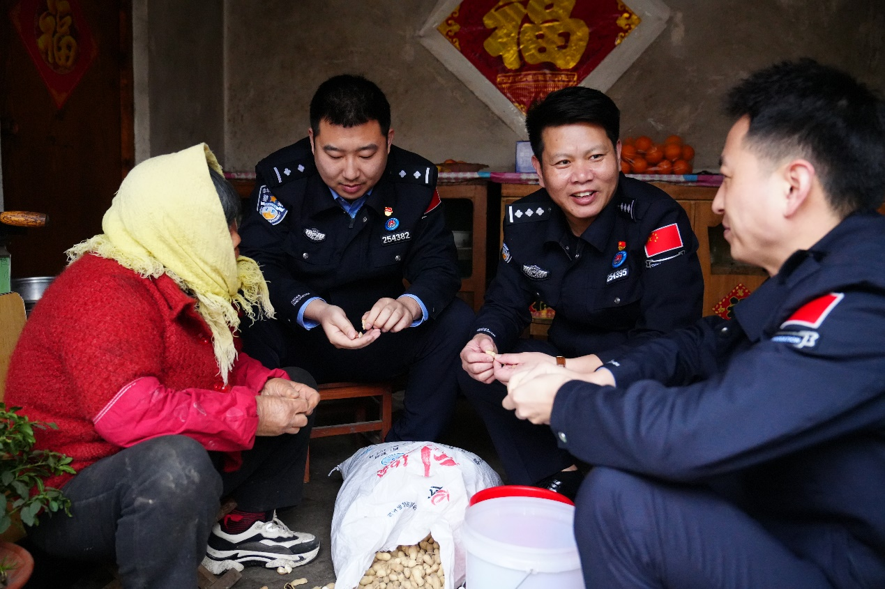 據(jù)了解,董翠蓮老人患有眼疾,孤身照顧身有殘疾的老伴已有20余年。當(dāng)民警楊曉龍、胡云龍、李虎一行走進(jìn)董翠蓮老人家中時(shí),老人正在屋里剝花生?!按竽?,我們來幫您!”民警們立即放下手中的慰問品,圍坐在老人身邊剝起花生來?!皠傁峦暧?,風(fēng)大,您年齡大了出門不安全,有什么需要給我們打電話?!薄白罱秒?、用氣一定要注意安全!”……句句關(guān)懷、聲聲叮嚀讓老人感動(dòng)不已。盡管雨后的天空陰沉沉的,但警民嘮嗑的笑聲在小院里此起彼伏?!斑@些孩子比親兒子還貼心,經(jīng)常來看我和我老伴,這次又送來這么多東西?!倍渖徖窬氖植蛔】滟潯?br/>