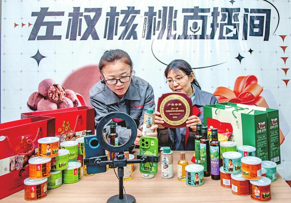 “要想心情好,多往左權跑,左權不光是陪伴你春夏秋冬的旅游勝地,也可以是你置辦山鄉(xiāng)好物的‘優(yōu)選庫’?!彪娚讨鞑ミ_人楊麗娜正對著鏡頭熱情介紹,從秀美鄉(xiāng)村到古法工藝再到美妙口感,傾情推薦左權綿核桃、太行小米、手工釀醋等“匠心農(nóng)品”,直播間熱度持續(xù)攀升。