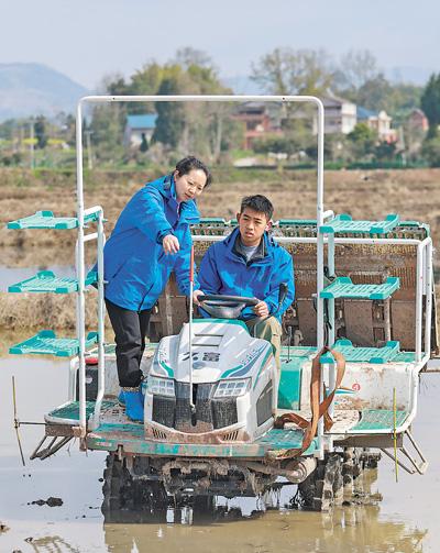 春分時節(jié),重慶市梁平區(qū)的種糧大戶張強駕駛插秧機在田間穿梭,所到之處,嫩綠的秧苗整齊插入田里?!叭ツ暝凇镩g學(xué)校’學(xué)的本事,讓我省了不少錢!”他拍了拍沾著泥點的褲腿,黝黑的臉上綻開笑容。