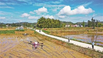 星橋鎮(zhèn)新農(nóng)人操作無人機開展水稻播種社會化服務(wù)。劉輝 攝