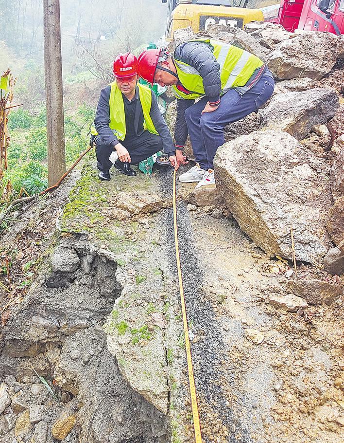3月14日,秭歸縣芝茅公路,保險公司工作人員在災(zāi)毀路段進行查勘核災(zāi)。記者 柯皓 通訊員 王耿 攝