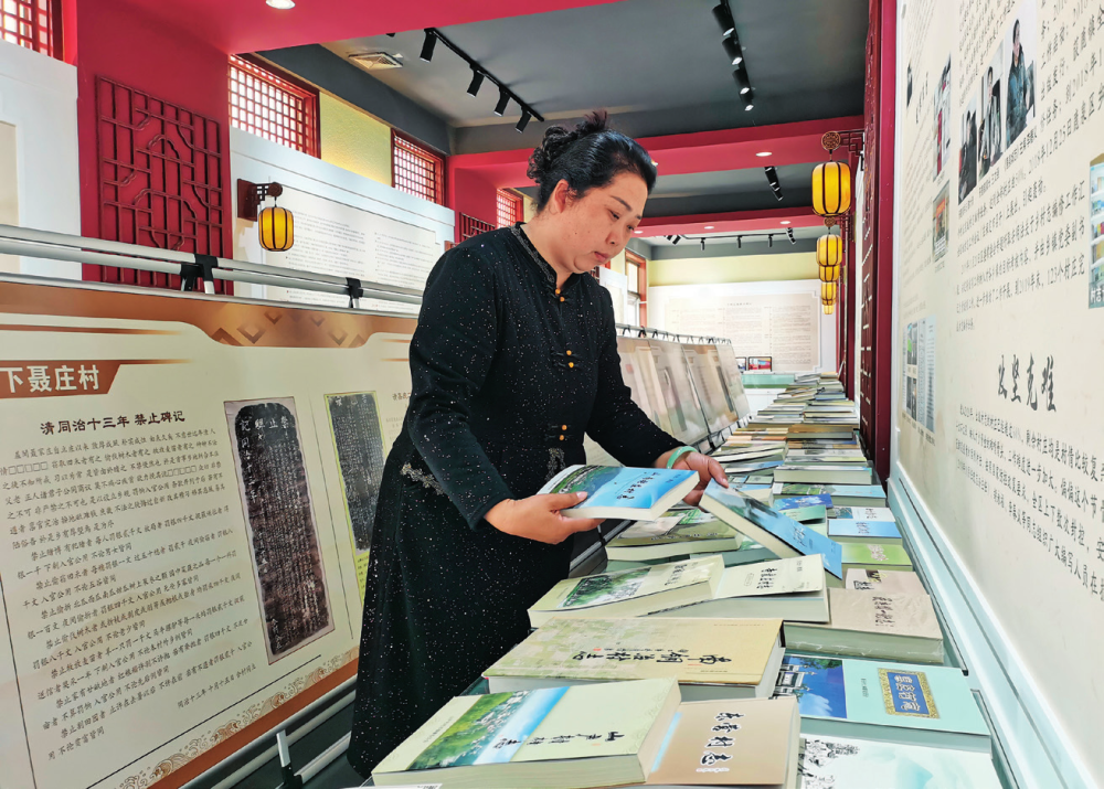 鹿泉村志編寫陳列館的工作人員正在整理各村編寫的村志(2025年3月25日攝)翟磊 攝