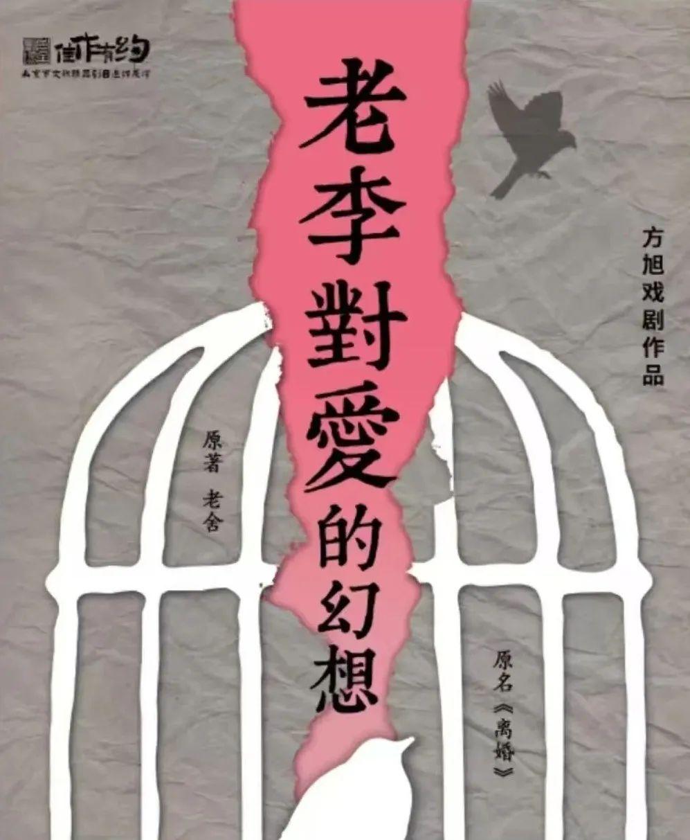 2025年3月末,由方旭、郭笑主演的話劇《老李對(duì)愛的幻想》在北京老舍劇場(chǎng)成功展演。該劇改編自老舍同名長(zhǎng)篇小說(shuō)《離婚》,講述主人公小“智識(shí)”分子老李掙扎于詩(shī)意幻想和庸俗實(shí)際,在傳統(tǒng)和變革進(jìn)退兩難的苦悶中,經(jīng)由一起“政治”暗殺促成自我蛻變的無(wú)奈故事。劇中著力表現(xiàn)民國(guó)離婚鬧劇風(fēng)潮下,小市民的情感困境及文化心態(tài),正如老李的舞臺(tái)形象:一身灰色長(zhǎng)衫,圍著藍(lán)色圍巾——灰藍(lán)色在老舍筆下是“最不得人心的”,因?yàn)椤耙挥錾详?yáng)光管保只剩下灰,一點(diǎn)也不藍(lán)”。