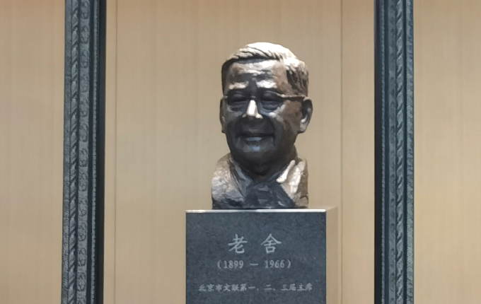 老舍劇場(chǎng)前廳老舍塑像 馬霞 攝