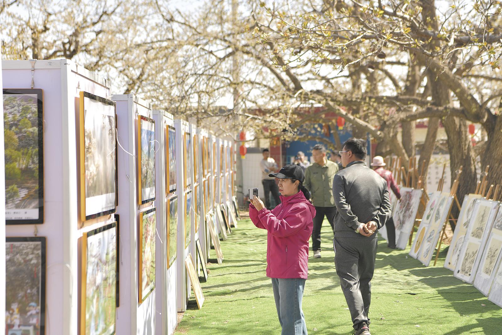 今年的橋頭村很不一樣,不僅增設(shè)了停車場(chǎng),多了很多“新”攤位,進(jìn)入梨園的道路兩旁還增加了“哪吒鬧春”國(guó)潮打卡彩繪墻。游客一路賞梨花、拍照,就來(lái)到了梨園。精心裝扮后的梨樹(shù)古色古香,樹(shù)下設(shè)置了賞花品茗休憩點(diǎn),坐滿了欣賞表演的游客,還有“梨園春色”主題攝影藝術(shù)展,供游客賞梨花之美、品人文之韻。
