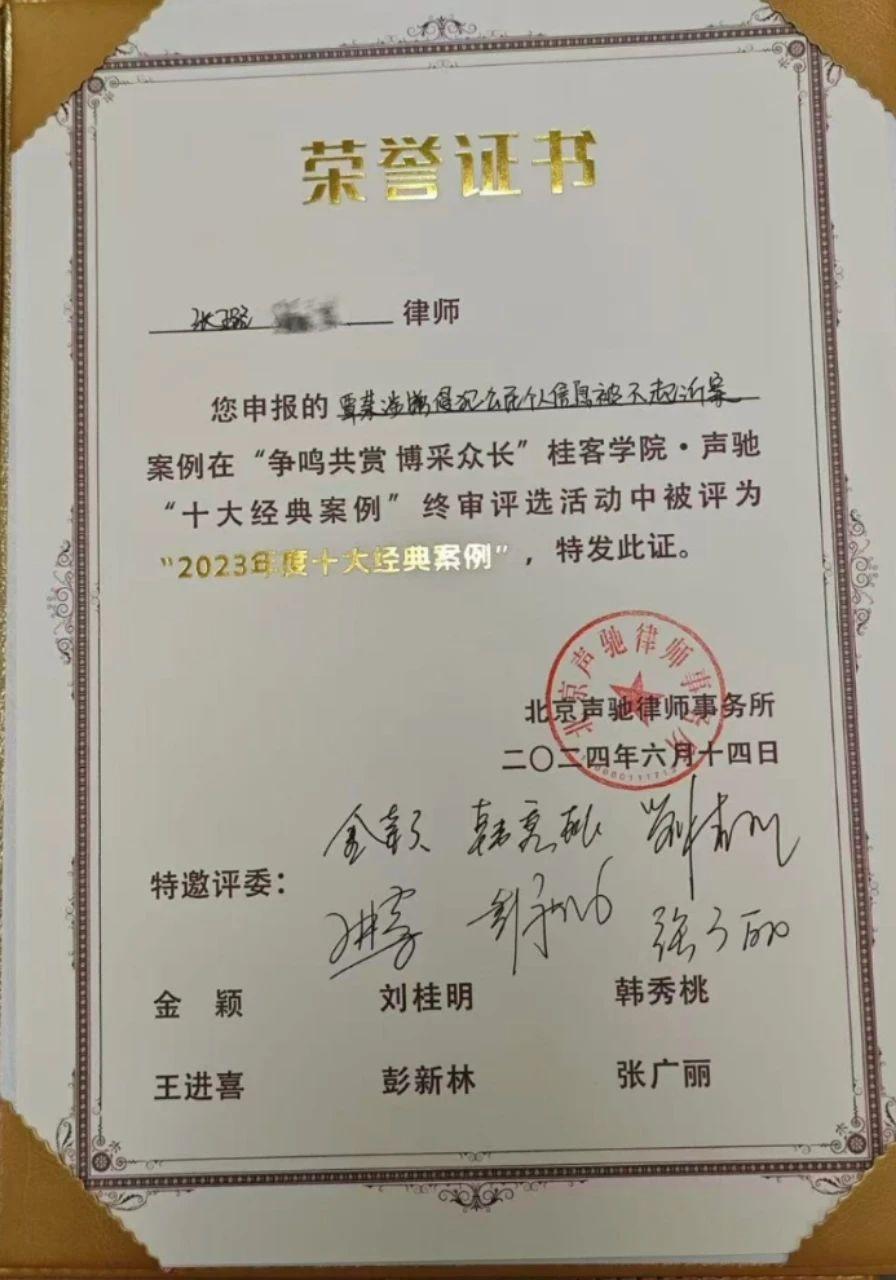 張璐所辦無罪案件獲得“經(jīng)典案例”榮譽(yù)