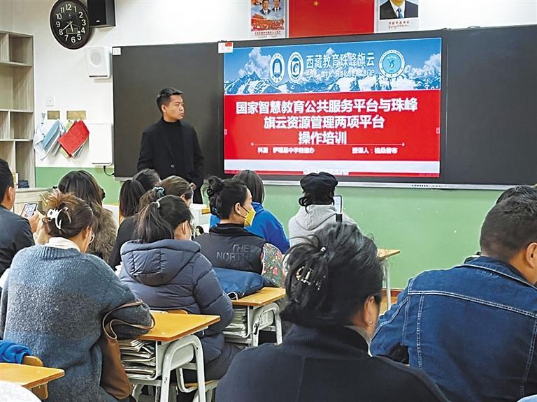 日喀則市薩嘎縣中學開展兩平臺應用培訓,助力教育數(shù)字化升級。受訪單位供圖
