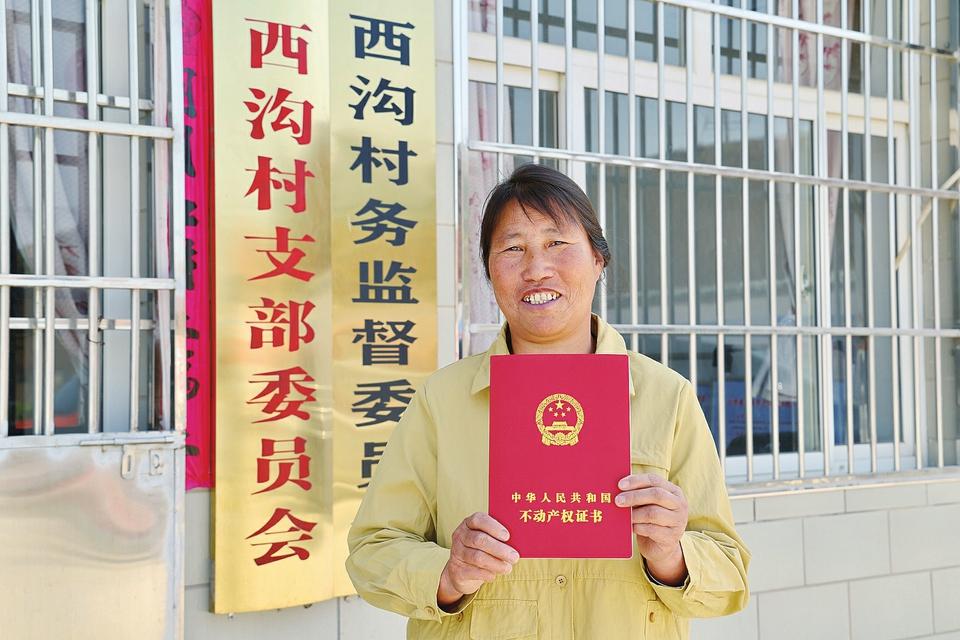首批拿到林權不動產(chǎn)權證書的龍泉鎮(zhèn)西溝村林農(nóng)王安青喜笑顏開。