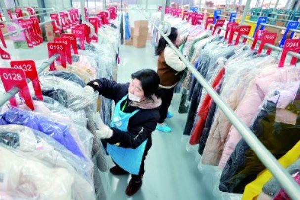 在她身后,數(shù)十臺清洗設(shè)備同時運(yùn)轉(zhuǎn),另一側(cè),洗凈消毒后的衣服按照客戶下單平臺分類掛放,穿行其間,如同走在“叢林”一般。“天越來越熱,基本上過了高峰期,高峰期每天收衣在6000件以上。”工廠負(fù)責(zé)人張磊介紹,去年,工廠訂單突破50萬件,產(chǎn)值達(dá)450萬元,向社區(qū)居民提供80余個就業(yè)崗位,人均增收3.5萬元。