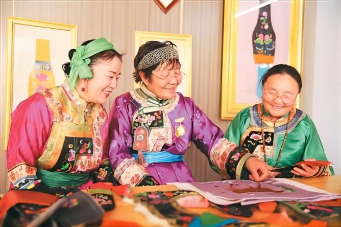 起線、穿針、打結(jié)、壓實(shí)、編排……一群身著蒙古族服飾的繡娘,在手工老師的指點(diǎn)下,正熟練地將手里的彩線穿梭其中,普通的彩線經(jīng)過(guò)靈巧雙手的精雕細(xì)琢后,完成了華麗轉(zhuǎn)身,成為一幅幅精美的刺繡作品。
