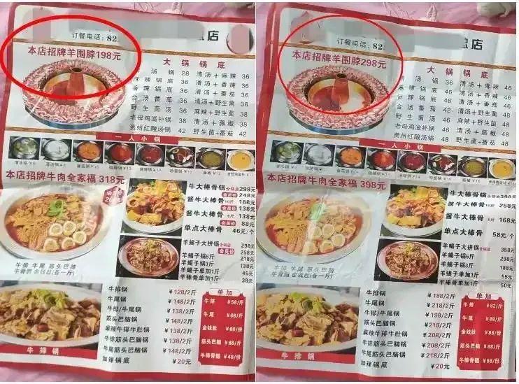 “陰陽(yáng)菜單”上招牌菜的價(jià)格不一樣