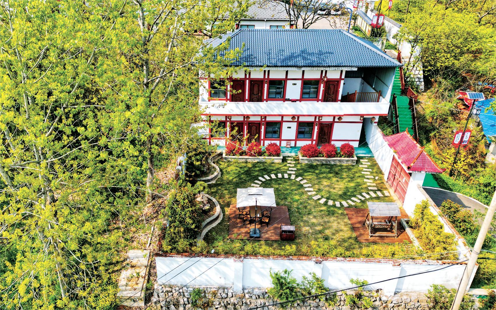 綠樹掩映中的妙山村民宿(淮南市八公山區(qū)委宣傳部供圖)