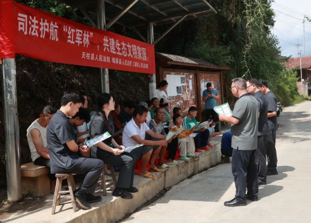 古樹名木是森林資源的瑰寶,更是歷史與文化的鮮活載體。8月13日,貴州省天柱縣人民法院牽頭聯(lián)合三穗、錦屏兩縣法院,組織黨員干警赴錦屏縣河口鄉(xiāng)塘東村“紅軍林”,共同開展“保護古樹名木,弘揚生態(tài)文明”主題黨日活動,以黨建“紅”引領(lǐng)生態(tài)“綠”,將黨組織戰(zhàn)斗力轉(zhuǎn)化為生態(tài)保護的強勁動力,讓紅色基因成為驅(qū)動高質(zhì)量發(fā)展的“綠色引擎”。