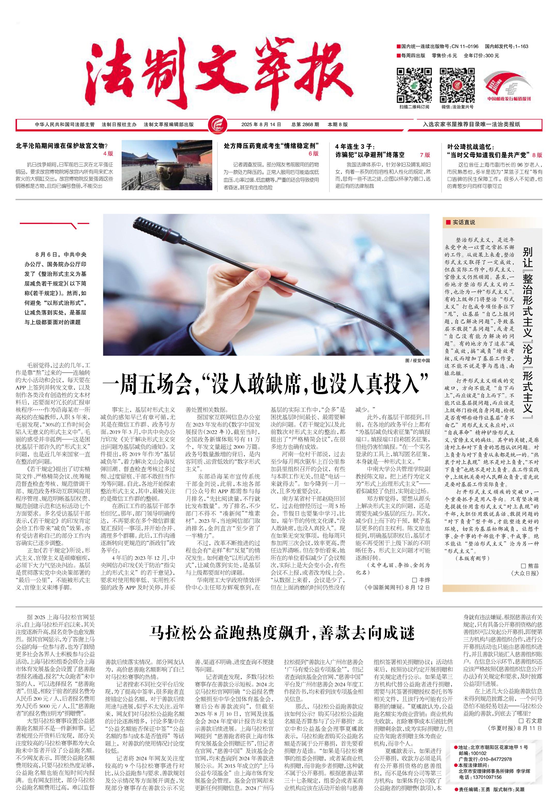 2025年8月14日《法制文萃報(bào)》總第2868期1版