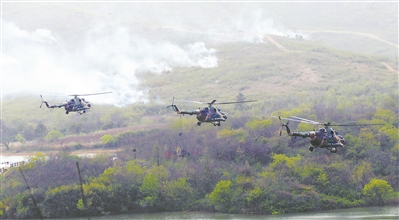 3月30日,江南某演訓場鐵翼飛旋。一聲令下,由偵察、武裝、運輸?shù)榷喾N機型組成的直升機編隊接續(xù)起飛,第72集團軍某陸航旅一場實戰(zhàn)背景下空中突擊、精兵奪控演練隨即展開。
