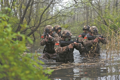 特戰(zhàn)隊員在叢林中追擊“暴恐分子”。