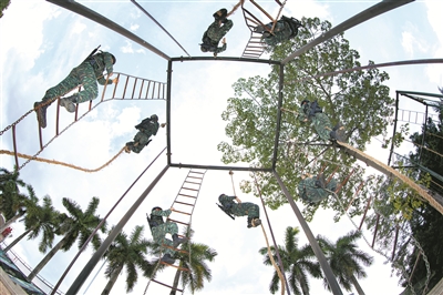 7月10日,武警廣西總隊(duì)機(jī)動(dòng)支隊(duì)組織官兵開(kāi)展攀登、擒敵等課目訓(xùn)練,提升綜合實(shí)戰(zhàn)能力。余海洋 攝