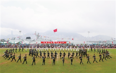 圖為駐香港部隊(duì)官兵進(jìn)行儀仗隊(duì)列表演。易定 攝