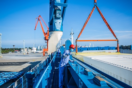 8月下旬,兩艘火箭運輸船先后從天津港起航,先期出發(fā)的遠(yuǎn)望21號船經(jīng)過6晝夜的海上航行,途經(jīng)渤海、黃海、東海、南海等海域,于8月29日安全停靠海南文昌清瀾港。隨后出發(fā)的遠(yuǎn)望22號船于9月1日抵達(dá)清瀾港,到達(dá)港口后兩船立即展開了火箭吊裝相關(guān)工作。
