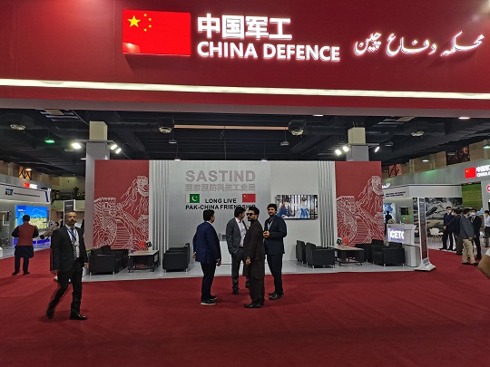 本屆展會吸引了來自50余個國家代表團參展觀展,中國展區(qū)面積750平方米,是參展規(guī)模最大的國家展團之一。中國展區(qū)采用一體化統(tǒng)一設計、統(tǒng)一搭建、統(tǒng)一組展的“中國軍工”展團形式獨立成館,展區(qū)入口中式紅色斗拱設計醒目,展現(xiàn)中國特色傳統(tǒng)文化;展區(qū)內(nèi)藍白色主基調(diào)鮮亮明快,凸顯科技主題;展品成體系成系列呈現(xiàn),展示先進技術水平;中國長城與巴基斯坦標志建筑獨立塔相結合的設計圖案,體現(xiàn)中巴傳統(tǒng)友誼源遠流長。