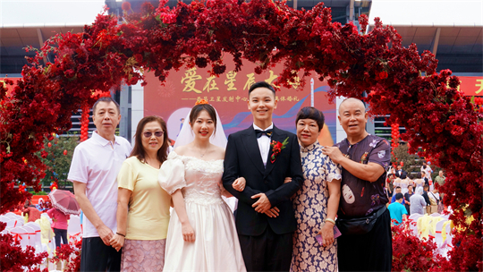 一項(xiàng)項(xiàng)儀式,將集體婚禮活動(dòng)引向高潮。此次參加集體婚禮的航天工作者大多來自一線崗位,他們常年執(zhí)行高密度航天發(fā)射任務(wù),缺少時(shí)間與愛人團(tuán)聚,有的婚期更是一再推遲。中心為一對對新人搭建起盛大的舞臺(tái),舉辦隆重的集體婚禮,讓祖國見證他們的幸福與榮光。