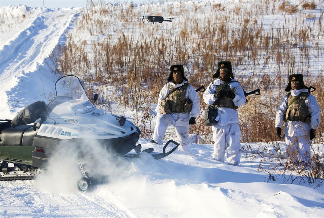 圖為陸軍某邊防旅“東方第一哨”官兵利用無人機(jī)巡邏執(zhí)勤。
