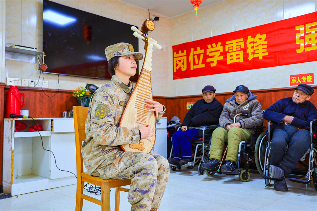 圖為第71集團(tuán)軍“攻堅勁旅”組織官兵走進(jìn)駐地敬老院開展“送溫暖、送節(jié)目、送醫(yī)療”等“三送活動”。