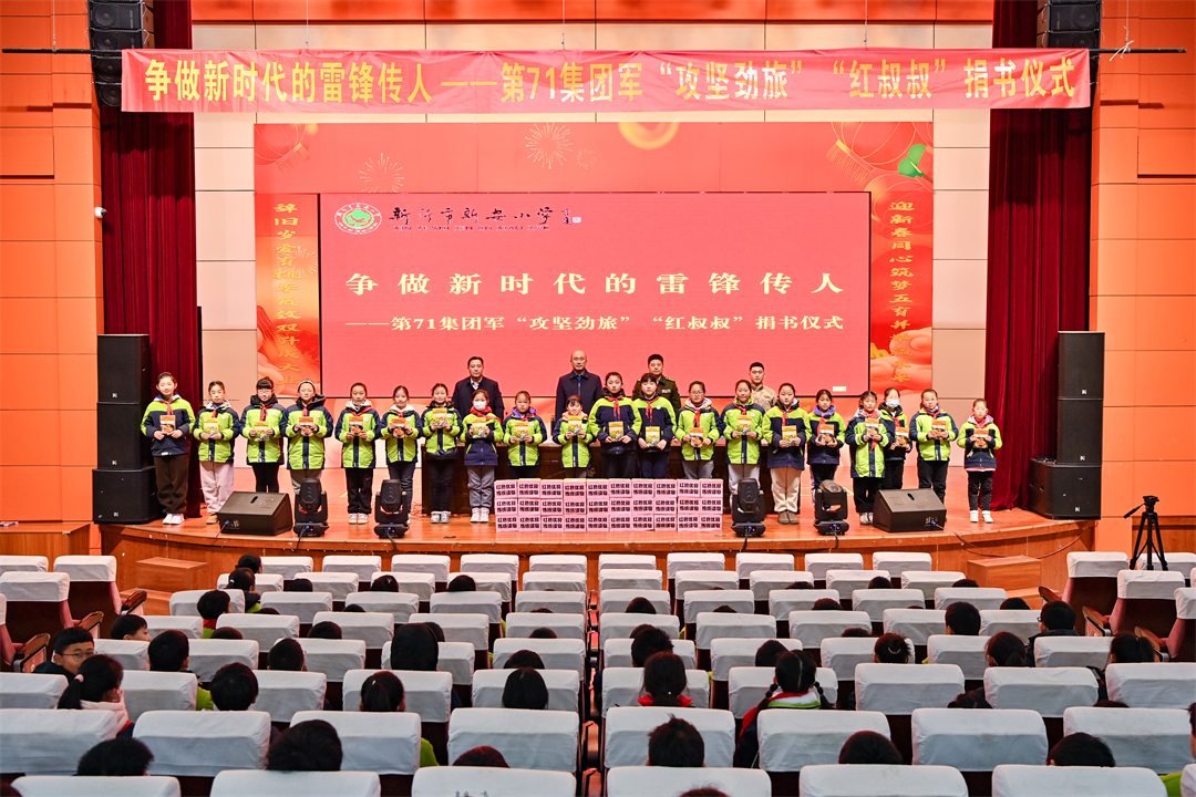 圖為第71集團(tuán)軍“攻堅勁旅”組織官兵走進(jìn)駐地學(xué)校,開展捐贈紅色書籍活動。