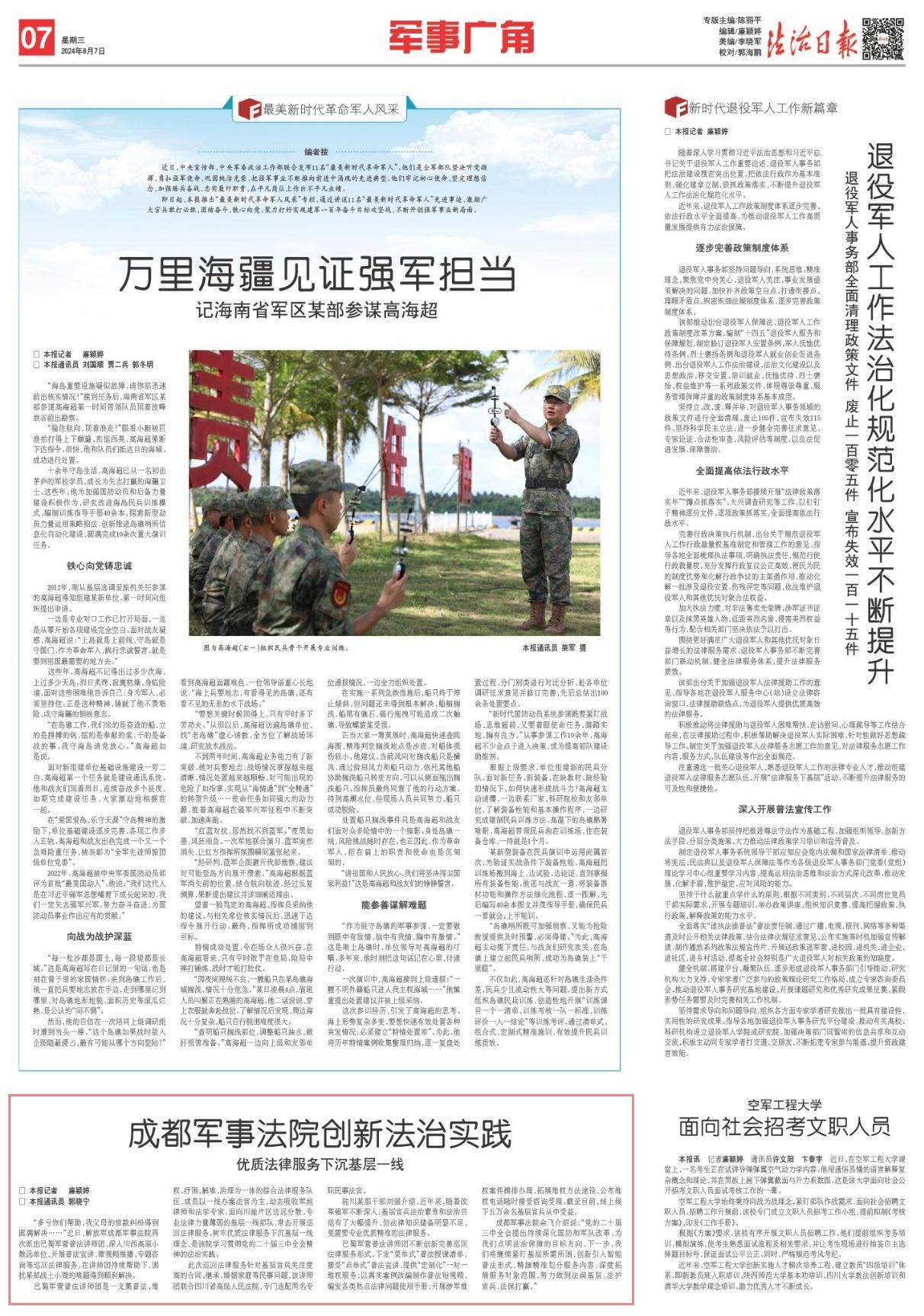 成都軍事法院余飛介紹說(shuō):“黨的二十屆三中全會(huì)提出持續(xù)深化國(guó)防和軍隊(duì)改革,為我們點(diǎn)明法治保障的目標(biāo)方向。下一步,我們將繼續(xù)緊盯基層所需所困,創(chuàng)新引入智能普法形式,精細(xì)精準(zhǔn)劃分服務(wù)內(nèi)容,深度拓展服務(wù)對(duì)象范圍,努力做到法潤(rùn)基層、法護(hù)官兵、法保打贏?!?/p>