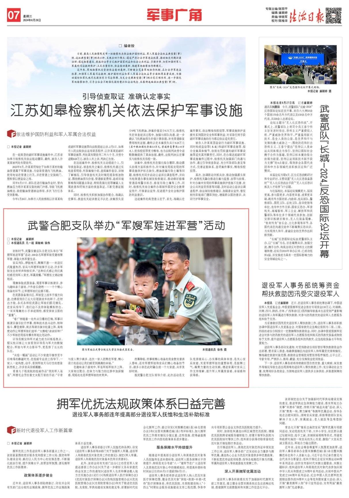據(jù)武警合肥支隊領導介紹,此次活動是支隊黨委暖兵心、辦實事的具體舉措,是關心官兵家庭、關愛軍嫂軍娃的重要體現(xiàn),是鼓舞士氣、凝聚力量的生動實踐,增進家屬對官兵工作支持理解,提升軍人軍屬榮譽感、幸福感和獲得感。
