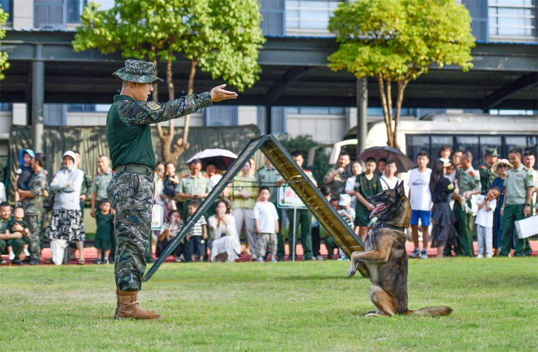 訓導員熊安和軍犬威力成為訓練場焦點,服從性訓練讓大家看到訓導員與軍犬的默契配合。軍娃與軍犬合影環(huán)節(jié),更是排了長長的隊伍。