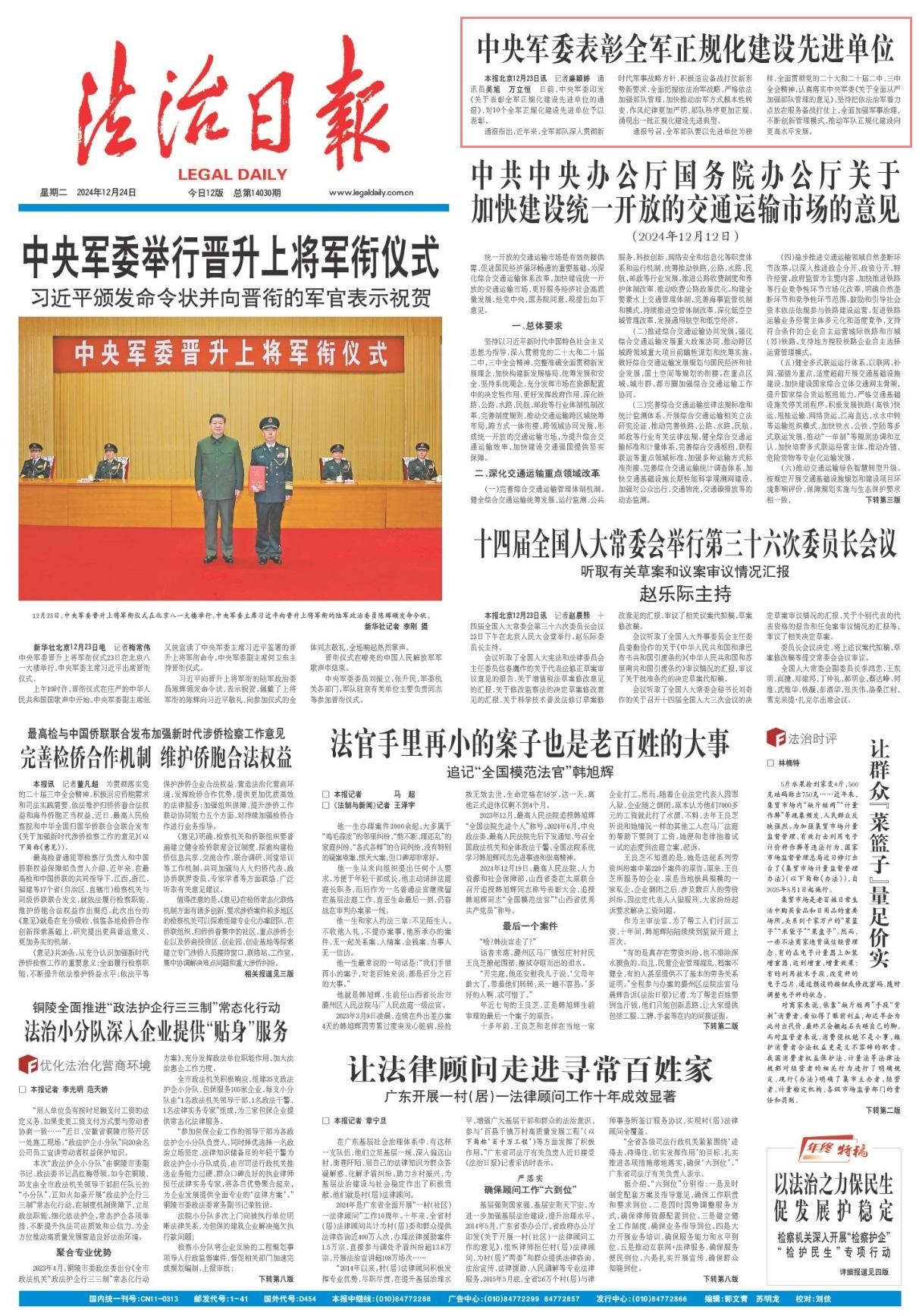 通報(bào)號(hào)召,全軍部隊(duì)要以先進(jìn)單位為榜樣,全面貫徹黨的二十大和二十屆二中、三中全會(huì)精神,認(rèn)真落實(shí)中央軍委《關(guān)于全面從嚴(yán)加強(qiáng)部隊(duì)管理的意見》,堅(jiān)持把依法治軍著力點(diǎn)放在服務(wù)備戰(zhàn)打仗上,全面加強(qiáng)軍事治理,不斷創(chuàng)新管理模式,推動(dòng)軍隊(duì)正規(guī)化建設(shè)向更高水平發(fā)展。