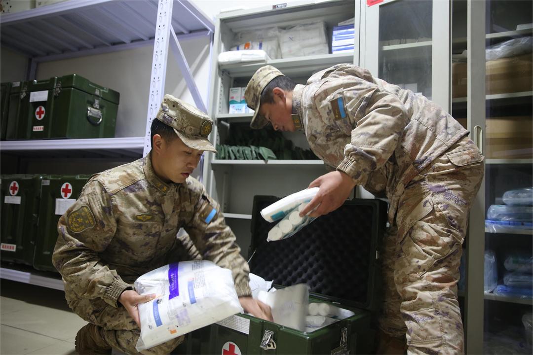 圖為西部戰(zhàn)區(qū)空軍某部官兵整理救援物資。徐林 攝