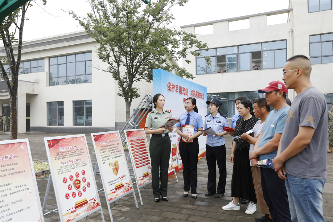 圖為全國人大代表陸軍某部班長陳瑜聯(lián)合干警現(xiàn)場以案釋法。