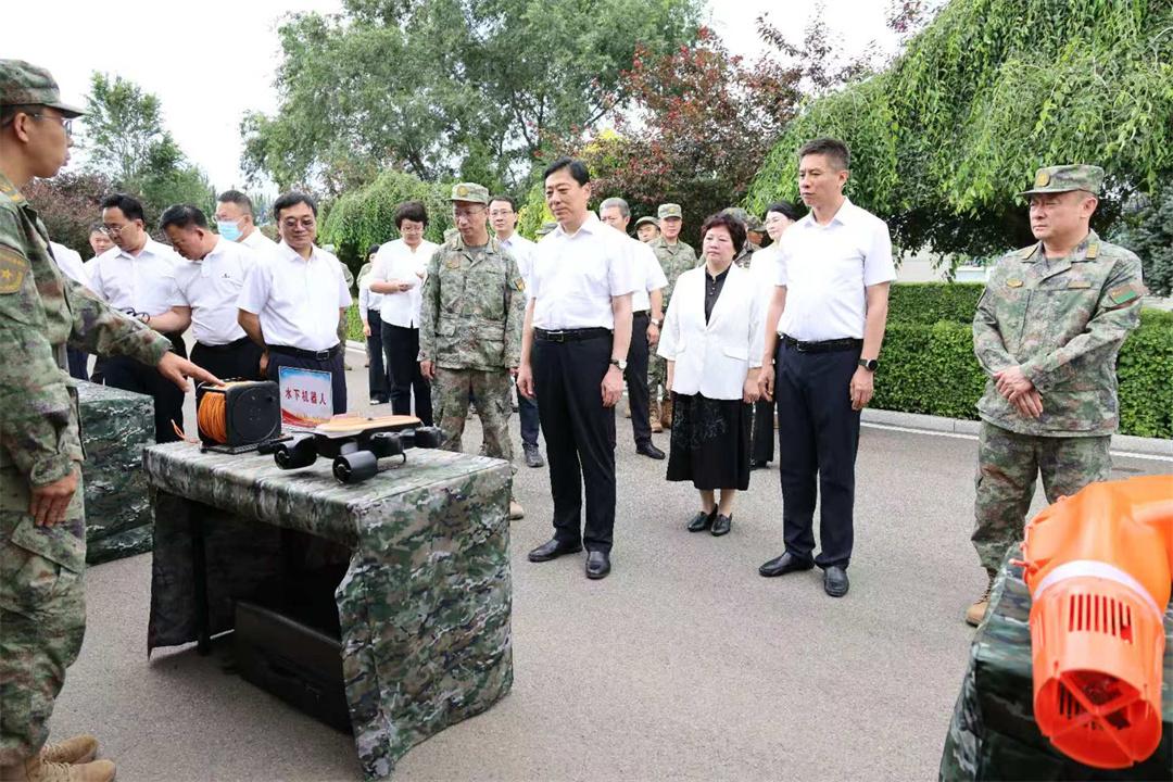 活動(dòng)中,興安盟四大班子領(lǐng)導(dǎo)在興安軍分區(qū)首長(zhǎng)陪同下,與駐軍部隊(duì)及各盟市相關(guān)單位領(lǐng)導(dǎo)一同來(lái)到武警內(nèi)蒙古總隊(duì)興安支隊(duì),參觀裝備器材、盟消防救援支隊(duì)搶險(xiǎn)救援裝備器材、興安盟民兵應(yīng)急力量裝備器材以及各類車輛展示等。