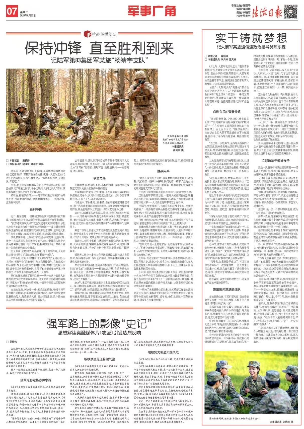 這些年,她一步一個腳印踩實走穩(wěn),成為廣大官兵奮斗強軍的青春榜樣。