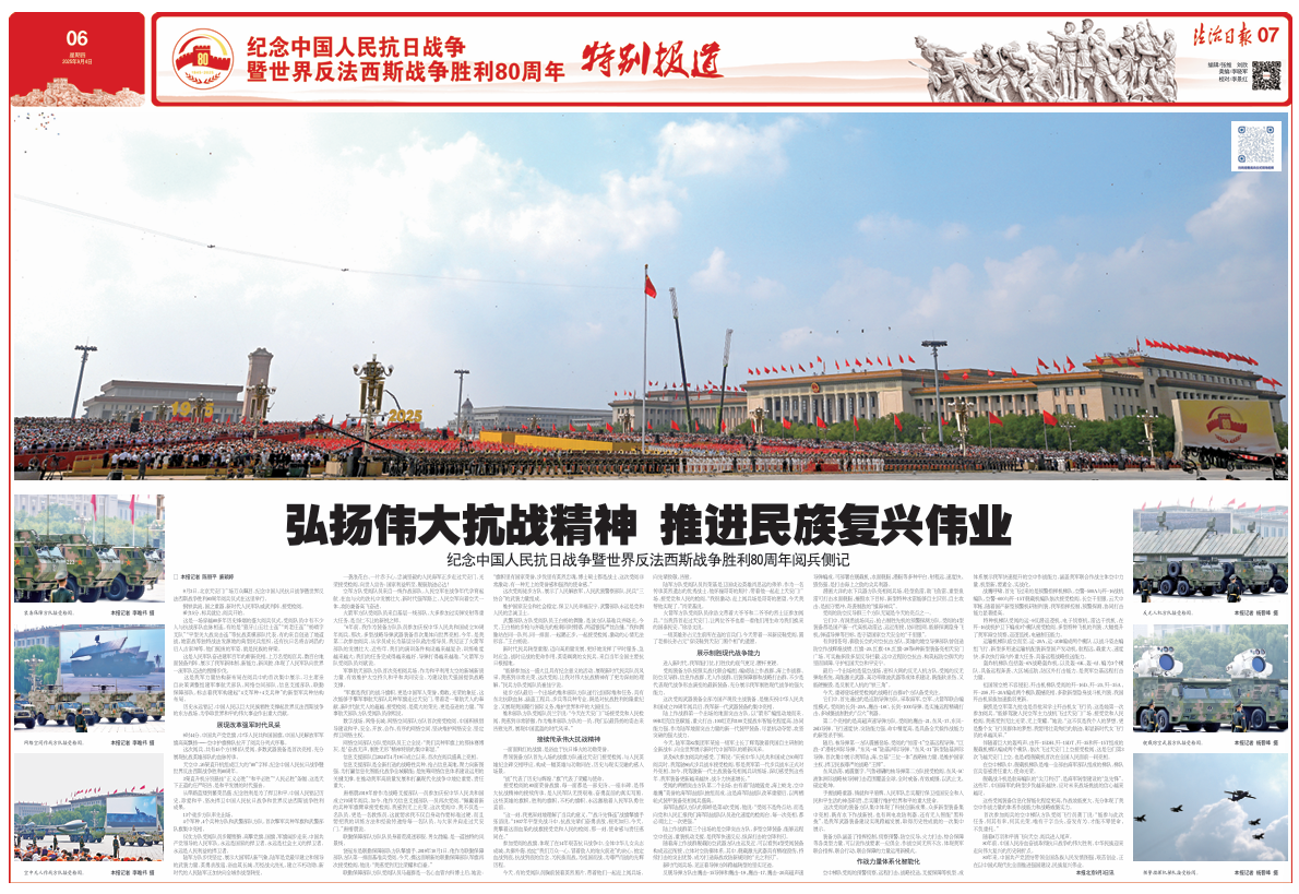 圖為9月3日,紀(jì)念中國(guó)人民抗日戰(zhàn)爭(zhēng)暨世界反法西斯戰(zhàn)爭(zhēng)勝利80周年閱兵式在北京隆重舉行。本報(bào)記者 楊晉峰 攝