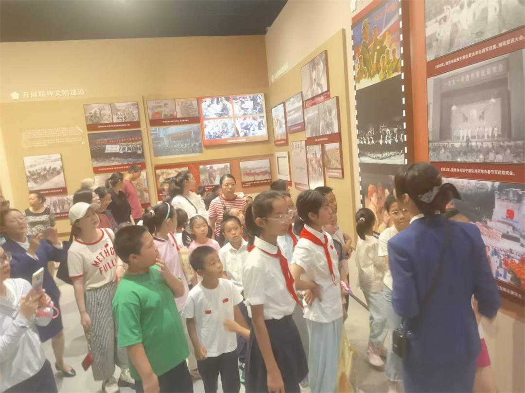 南京雙擁文化館展陳面積約2500平方米,主題為“軍民同心榮光共鑄”,分為浴血奮戰(zhàn)魚水情深、奮發(fā)圖強休戚與共、勇立潮頭軍民同心、踔厲前行強國強軍四個篇章,采取圖文、實物、影像、AI復原等多元手段,講述發(fā)生在南京的雙擁故事,生動呈現(xiàn)“愛我人民愛我軍”的時代篇章和軍政軍民團結的恢宏畫卷。試開放當天,有上千人次前來參觀。