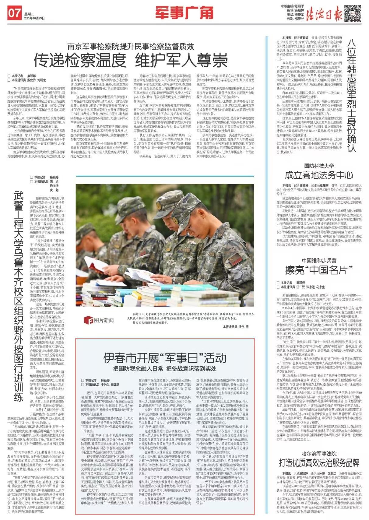據(jù)了解,伊春市近年來通過把“軍事日”活動常態(tài)化、制度化,持續(xù)創(chuàng)新活動形式、豐富訓(xùn)練內(nèi)容,推動國防教育融入城市發(fā)展、融入群眾生活,讓“軍民同心、共筑國防”成為林都伊春的鮮明底色,為守護(hù)生態(tài)安全、筑牢邊疆國防屏障凝聚更強(qiáng)合力。