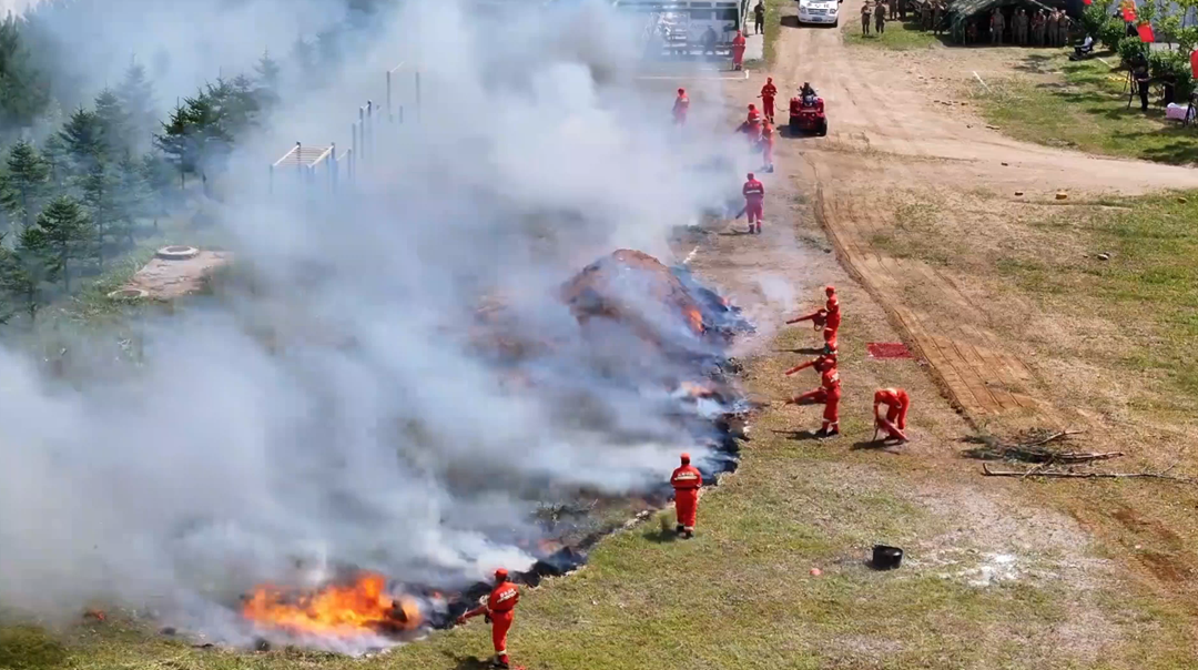 在空中和地面力量協(xié)同配合下,大火很快被撲滅。這是伊春市黨政軍領(lǐng)導(dǎo)參加“軍事日”暨特色民兵分隊(duì)建設(shè)觀摩活動的一個鏡頭。
