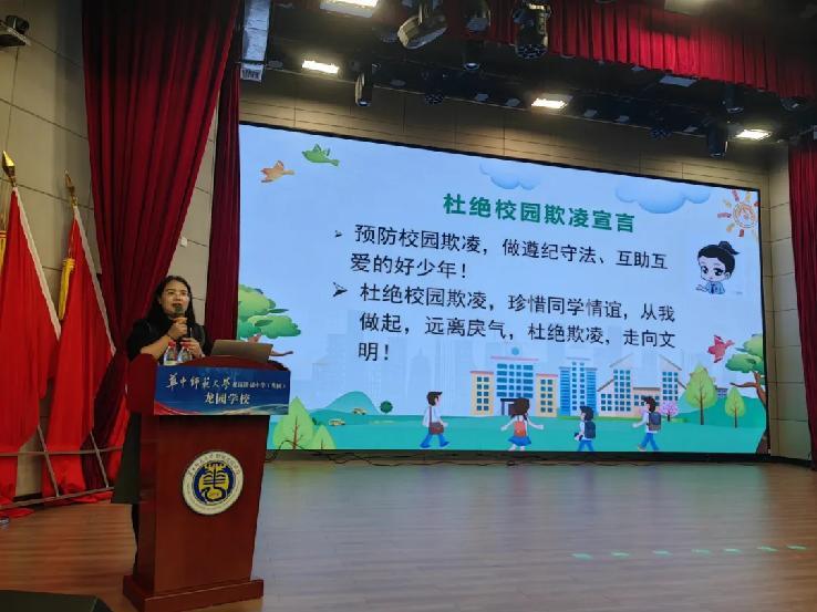12月5日,龍崗社區(qū)邀請(qǐng)龍崗街道司法所夏靜律師到校開(kāi)展以“點(diǎn)亮六年級(jí),拒絕校園欺凌”為主題的講座活動(dòng)。本次講座旨在增強(qiáng)學(xué)生對(duì)校園霸凌的認(rèn)知,提升學(xué)生的自我保護(hù)意識(shí),教導(dǎo)他們?nèi)绾卧谠庥鲂@霸凌時(shí)采取有效措施保護(hù)自己。