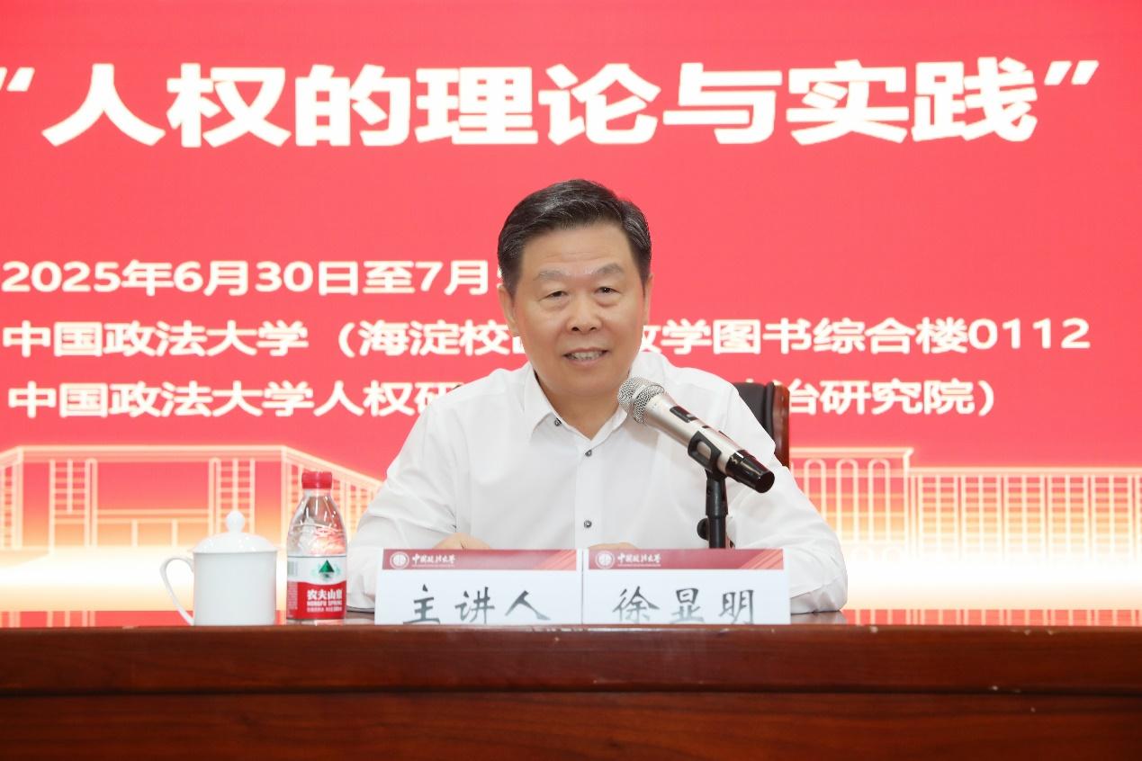 教育部高等學校法學類專業(yè)教學指導委員會主任委員、中國人權研究會首席專家、十三屆全國人大監(jiān)察和司法委員會副主任委員徐顯明以“關于人權的幾個基本問題”為題,作暑期班首場授課。徐顯明從法律、哲學、政治、歷史等多個角度出發(fā),深入闡述了人權是全人類的共同價值、人權的概念和層次、人權的發(fā)展階段、人權的歷史演變等內容。