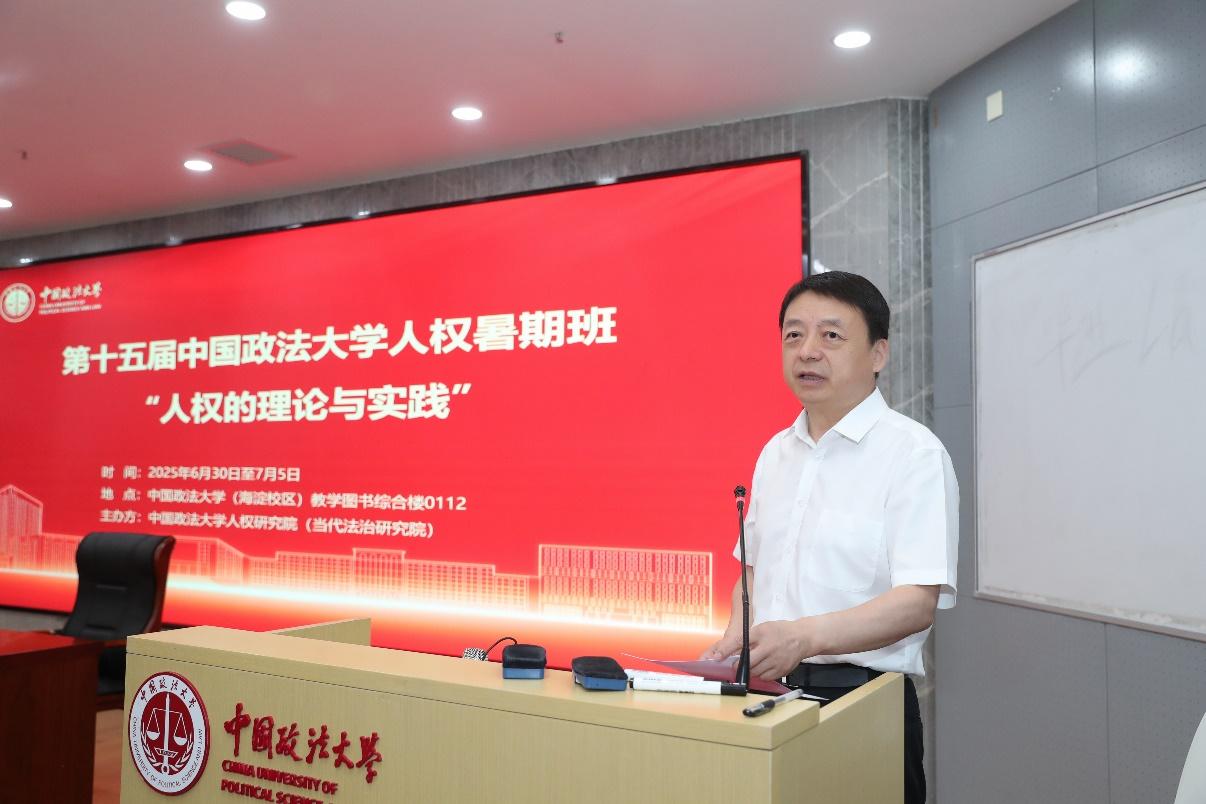 中國政法大學校長馬懷德出席開班儀式并致辭。馬懷德提出,中國政法大學始終致力于推動中國特色法學學科體系、學術體系、話語體系建設,構建中國法學自主知識體系。作為“國家人權教育與培訓基地”和“國家高端智庫建設培育單位”,人權研究院(當代法治研究院)不斷提升政治站位,深入貫徹落實國家人權行動計劃,堅定履行人權教育培訓、理論研究、對外交流三大使命。他強調,人權是全人類共同的價值追求,人權教育不僅是知識的傳授,更是價值的塑造與人格的涵養(yǎng)。人權暑期班作為一項高水平、跨領域、國際化的人權教育實踐,不僅是人權知識的傳播課堂,更是理念交匯的對話平臺,青年學子應以跨學科視角,多維度、多視角、多層次了解人權研究的重大議題,在多邊、多元的交流中不斷拓展全球視野與認知邊界,努力成為具有全球視野和中國立場的法治人才。他同時希望各位學員能夠借此機會深入開展學術交流,共同推動中國人權學科建設、學術研究與國際傳播。